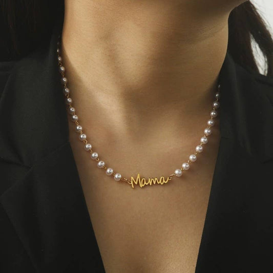 Mama Pearl Script Necklace