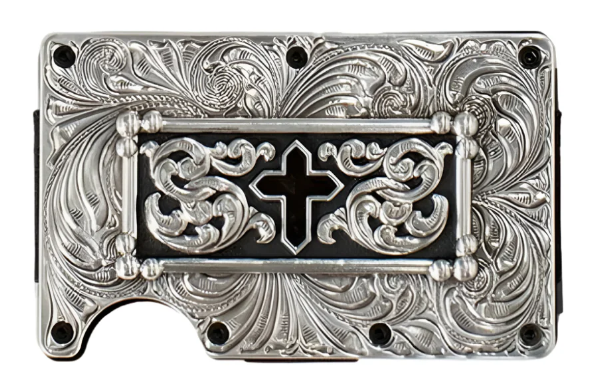 Make a statement with the sophisticated Black/Silver color combination and sleek decorative engraving on this Durable Carbon Fiber 3D Utility Cross Wallet. With RFID blocking technology and the ability to hold up to 12 cards, the convenient push notch design offers easy access to your cards.
