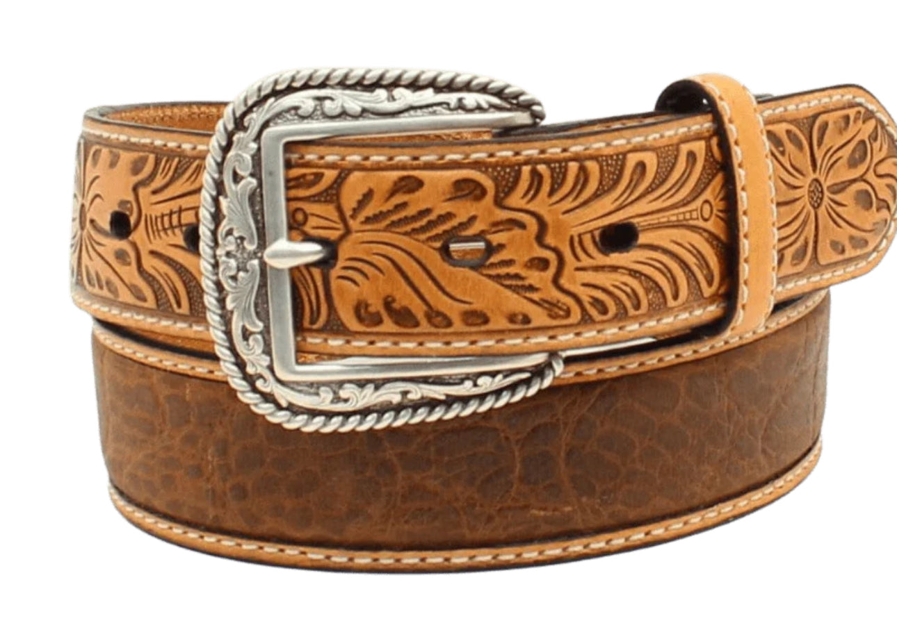 ARIAT MEN'S BROWN CROCODILE FLORAL TABS LEATHER BELT