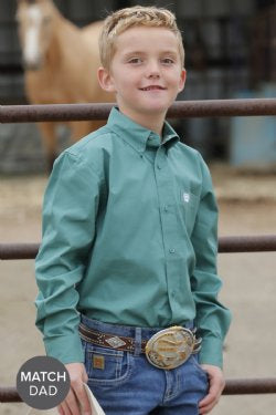 BOY'S SOLID BUTTON-DOWN WESTERN SHIRT - GREEN