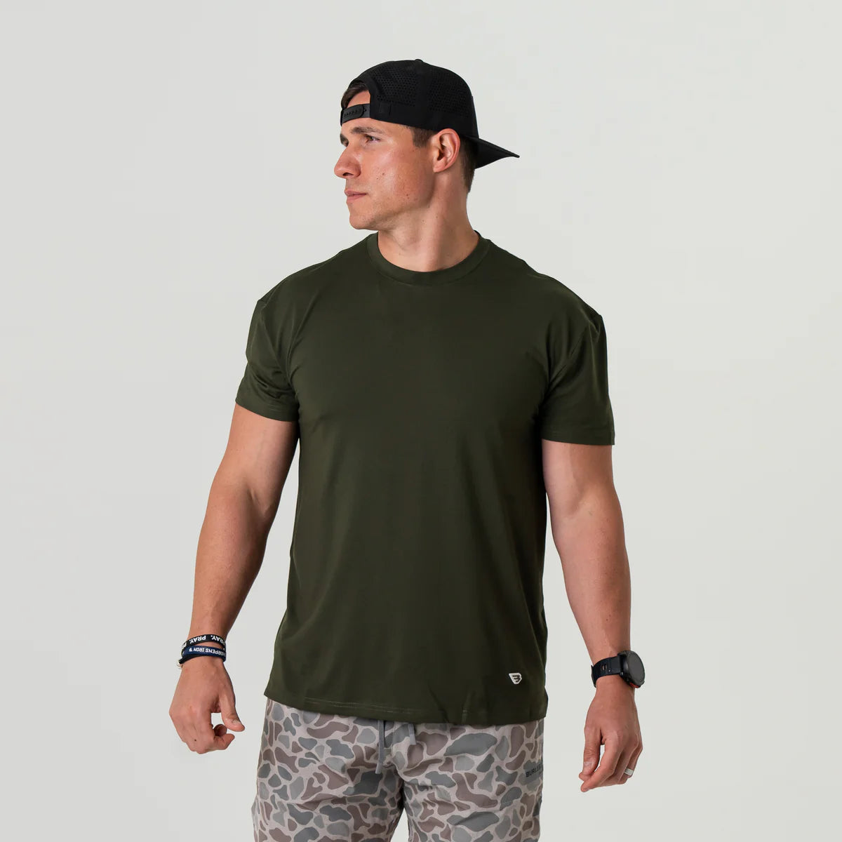 Our "Go To Tee," the ultimate companion for your active lifestyle. Crafted from a blend of 91% polyester and 9% spandex, this tee offers superior comfort and performance, ensuring you stay cool and dry throughout the day. With UPF 50 sun protection, you can confidently take on outdoor activities while shielding your skin from harmful UV rays. The lightweight performance fabric is quick-drying and moisture-wicking, keeping you fresh and comfortable even during the most intense workouts. Featuring anti-microbial properties, this tee helps combat odor-causing bacteria, keeping you feeling fresh and confident all day long. Whether you're hitting the gym, going for a run, or simply running errands, our "Go To Tee" is the perfect choice for all your active endeavors.