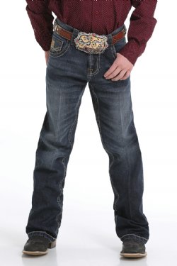 Constructed in a performance stretch denim, this relaxed fit boy's jean features a classic rinse finish complimented by tint, hand sanding, whiskers and chevrons. Cream and amber embroidered back pockets, along with copper hardware deliver a jean with continuous style.