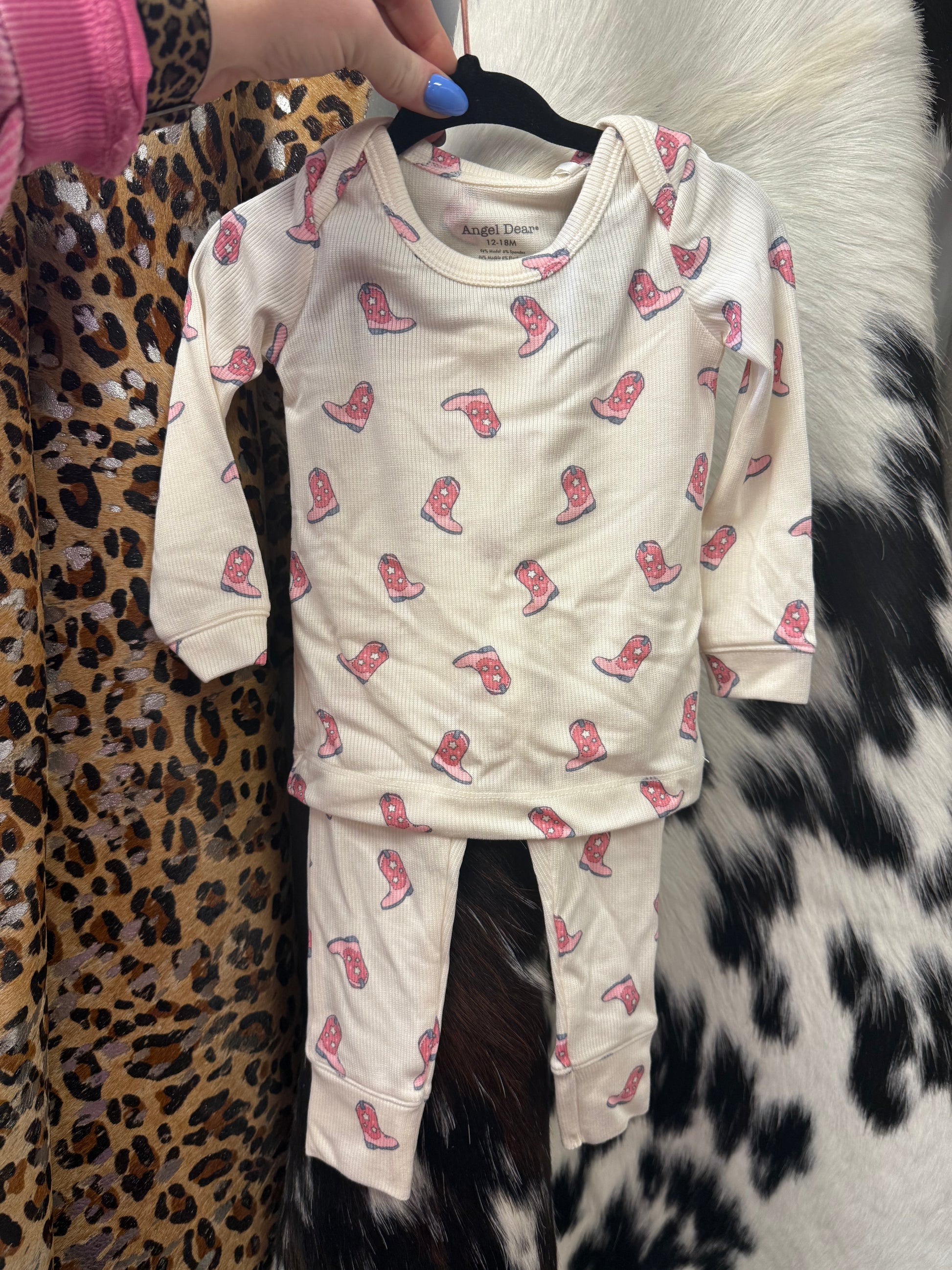 Two piece cowgirl boot pajama set.