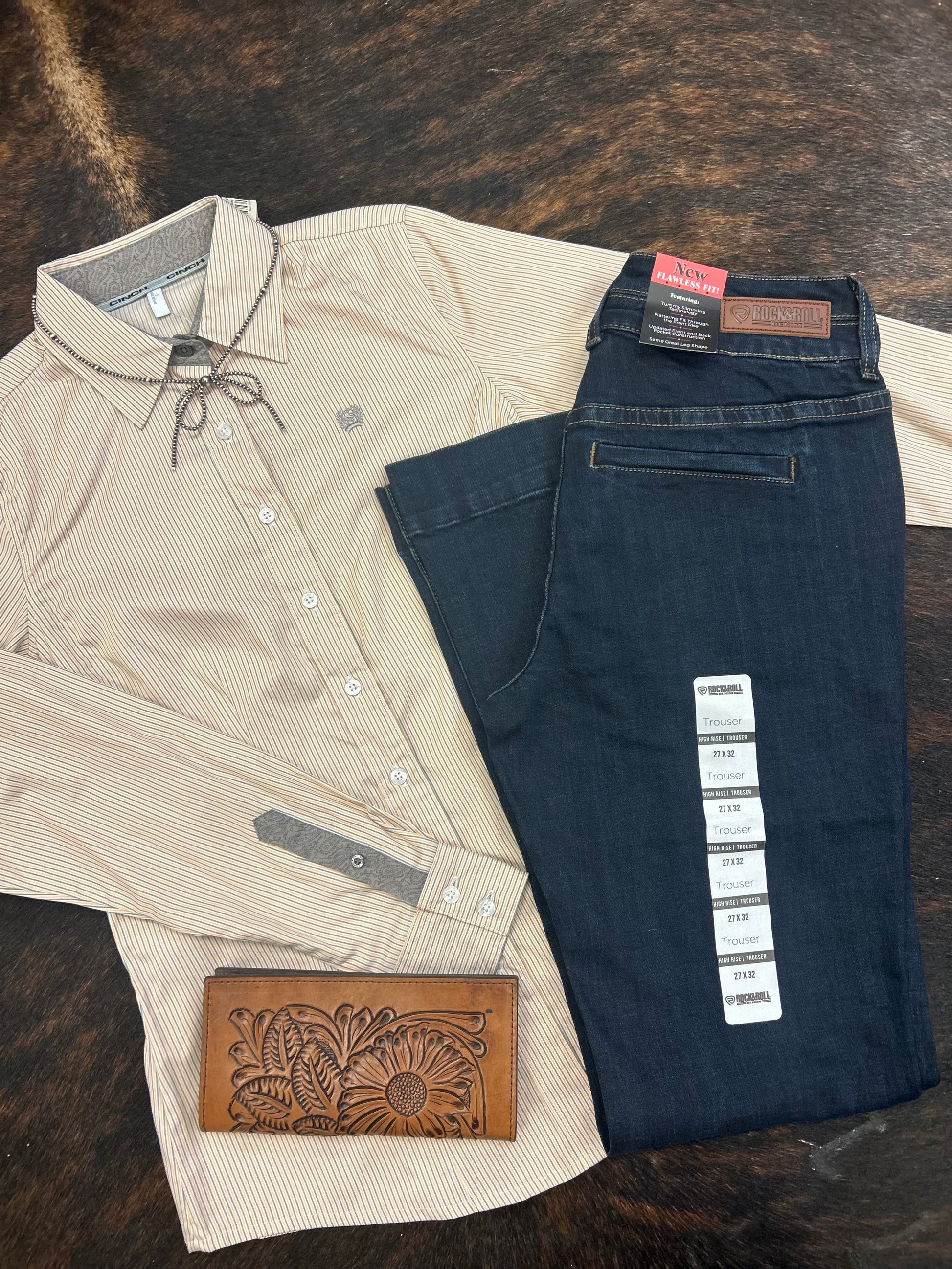 Rock N Roll Denim High Rise Stretch Dark Wash Welt Pocket Trousers