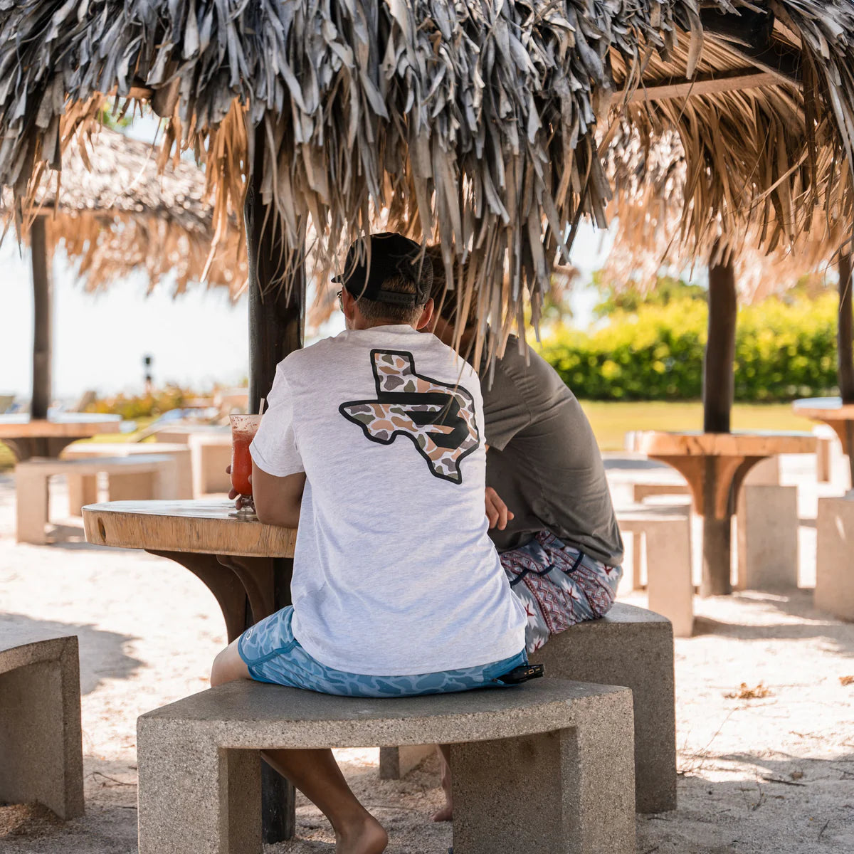 Short Sleeve Tee - Texas Camo Flying B Logo - Heather Ash Grey