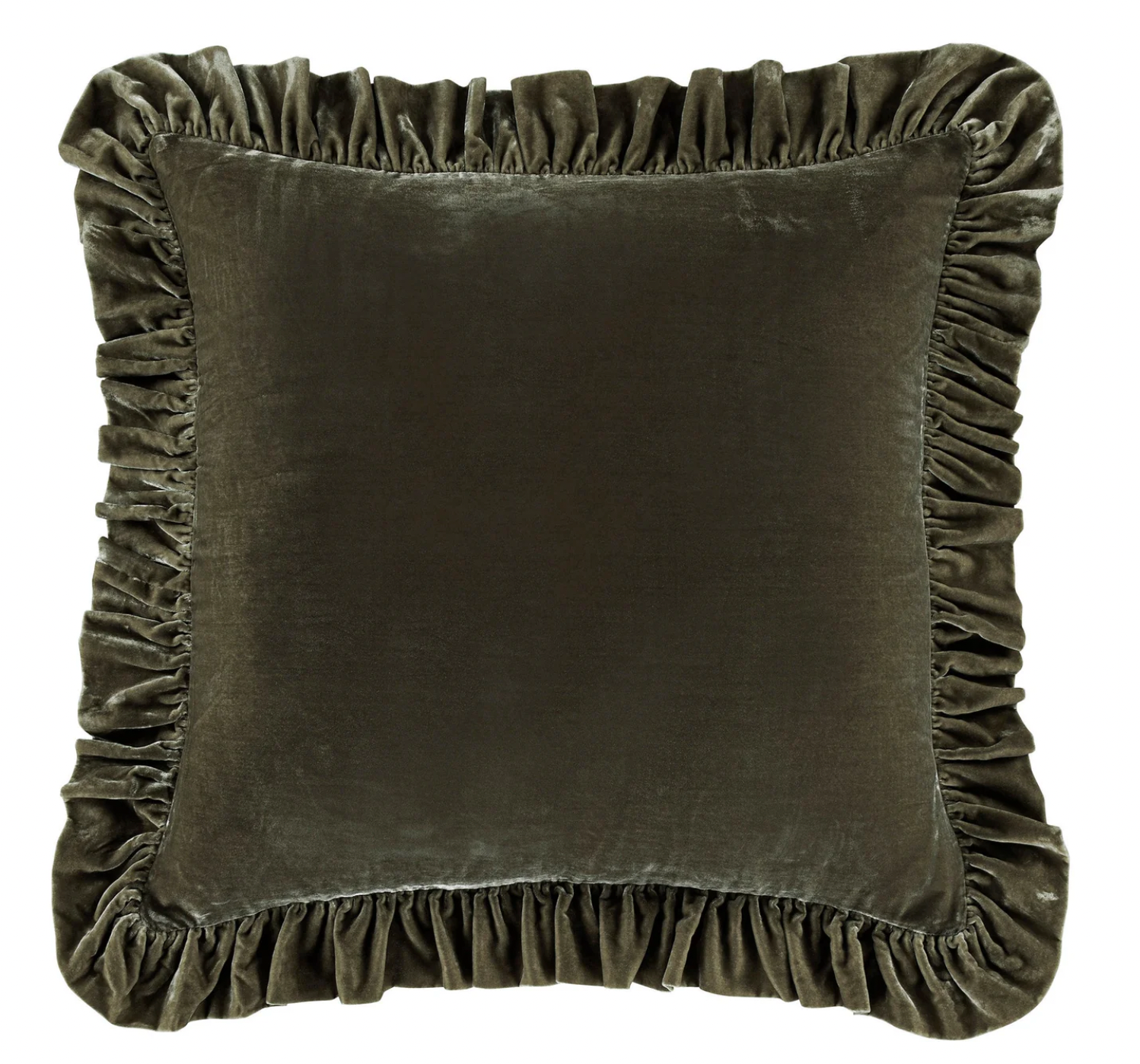 Stella Faux Silk Velvet Ruffled Euro Sham - Fern Green