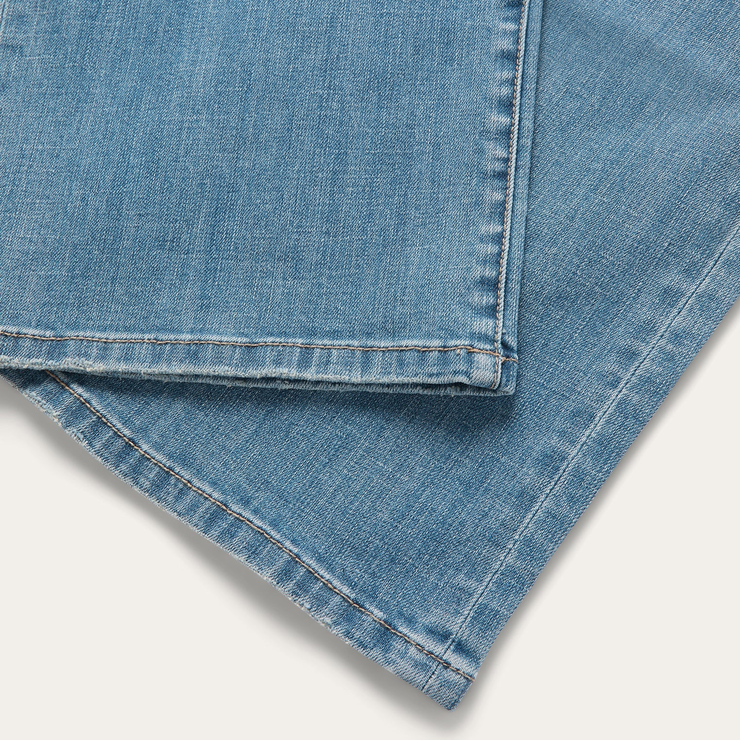 The 675 Mid-Rise Wide Leg Jean is crafted from premium stretch denim that delivers comfort, structure, and a flattering drape. With a mid-rise waist and a wide leg opening, it offers a balanced, timeless silhouette. Details include subtle whiskering and sanding, plain back patch pockets with cursive “R” embroidery, and Stetson-branded hardware.