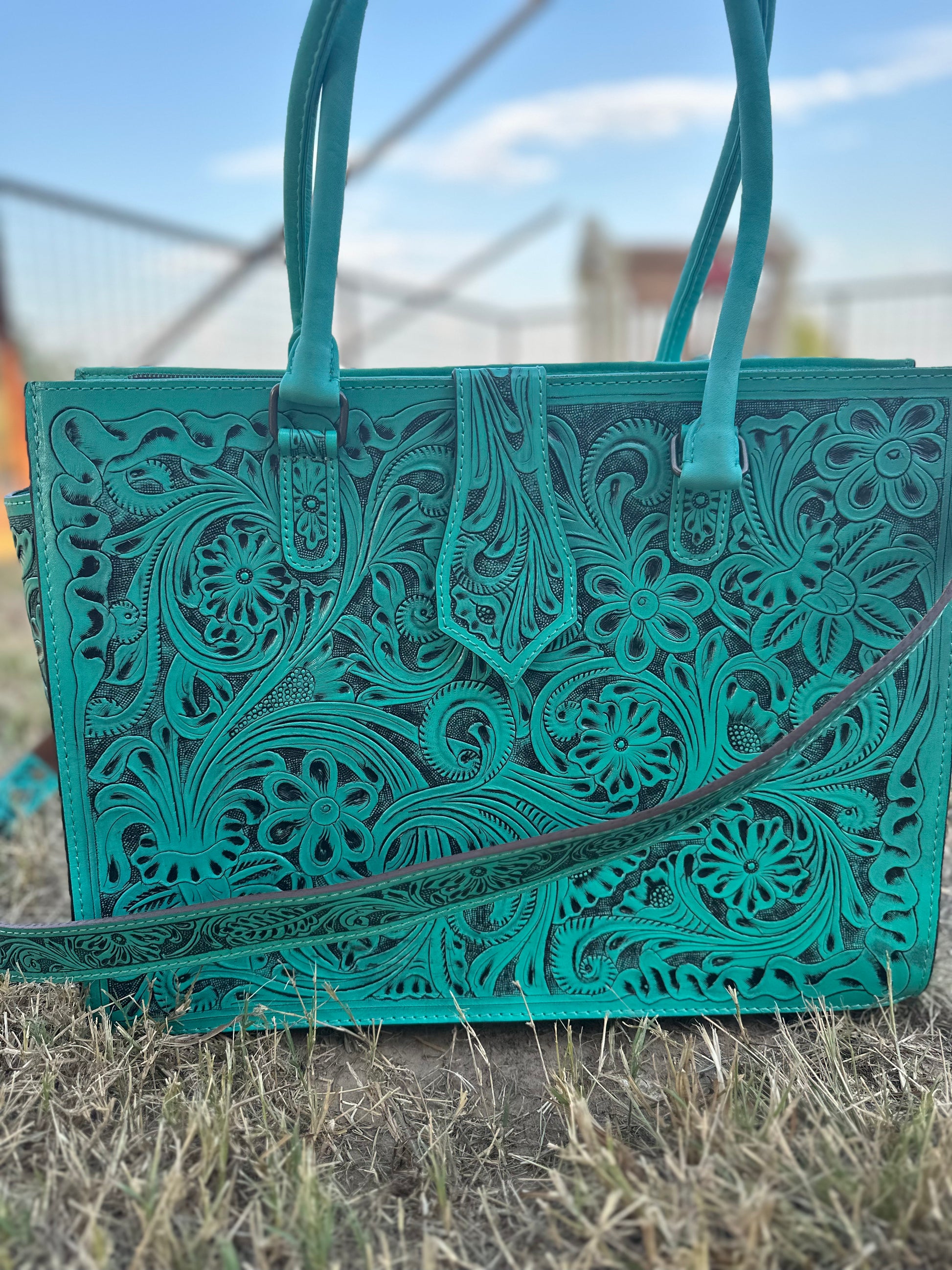 Turquoise Tooled Tote