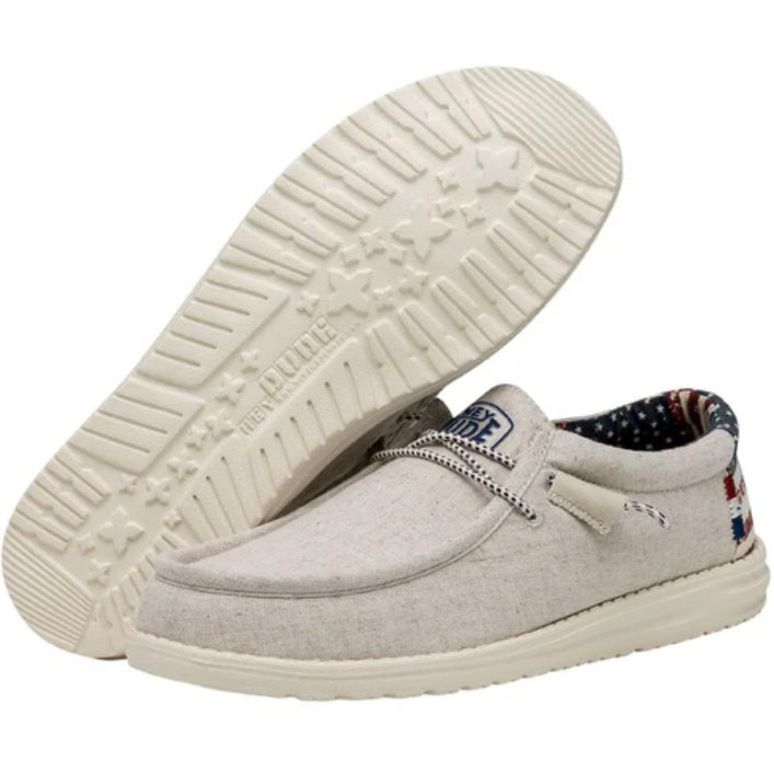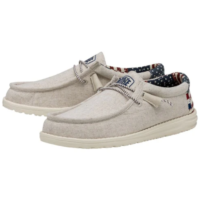 Let freedom ring. The Wally Patriotic is your all-American go-to. The cotton-canvas upper is breathable, durable and BBQ-ready. The foam insole is for do-everything, warm-weather seasons. And the flexible, lightweight outsole adds just another HEYDUDE™ feature you love. A stars-and-stripes style that’s made for summer days.
